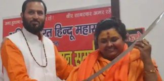 ഗാന്ധിജിയുടെ ചിത്രത്തിനു നേരെ പ്രതീകാത്മകമായി നിറയൊഴിച്ചതിന് ആദരം;പൂജാ ശകുന് പാണ്ഡെയ്ക്ക് ഭഗവത്ഗീതയും വാളും നല്കി...