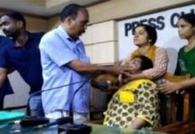 കോണ്ഗ്രസ് നേതാക്കള്ക്കെതിരെ നടത്തിയ വാര്ത്താസമ്മേളനത്തില് മഹിളാ കോണ്ഗ്രസ് അംഗം കുഴഞ്ഞുവീണു